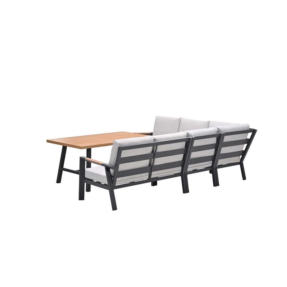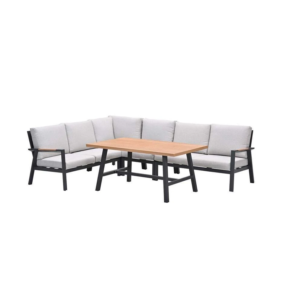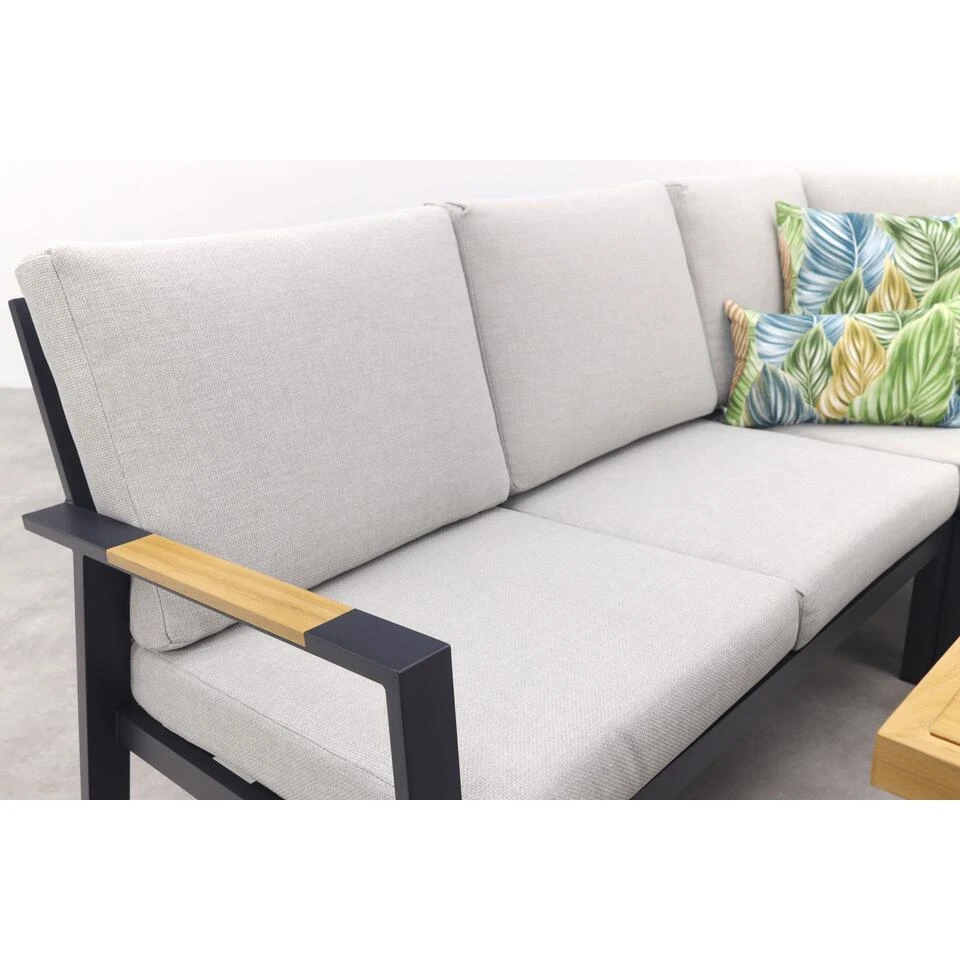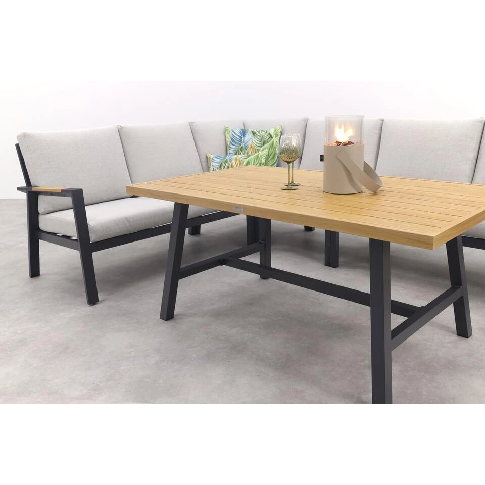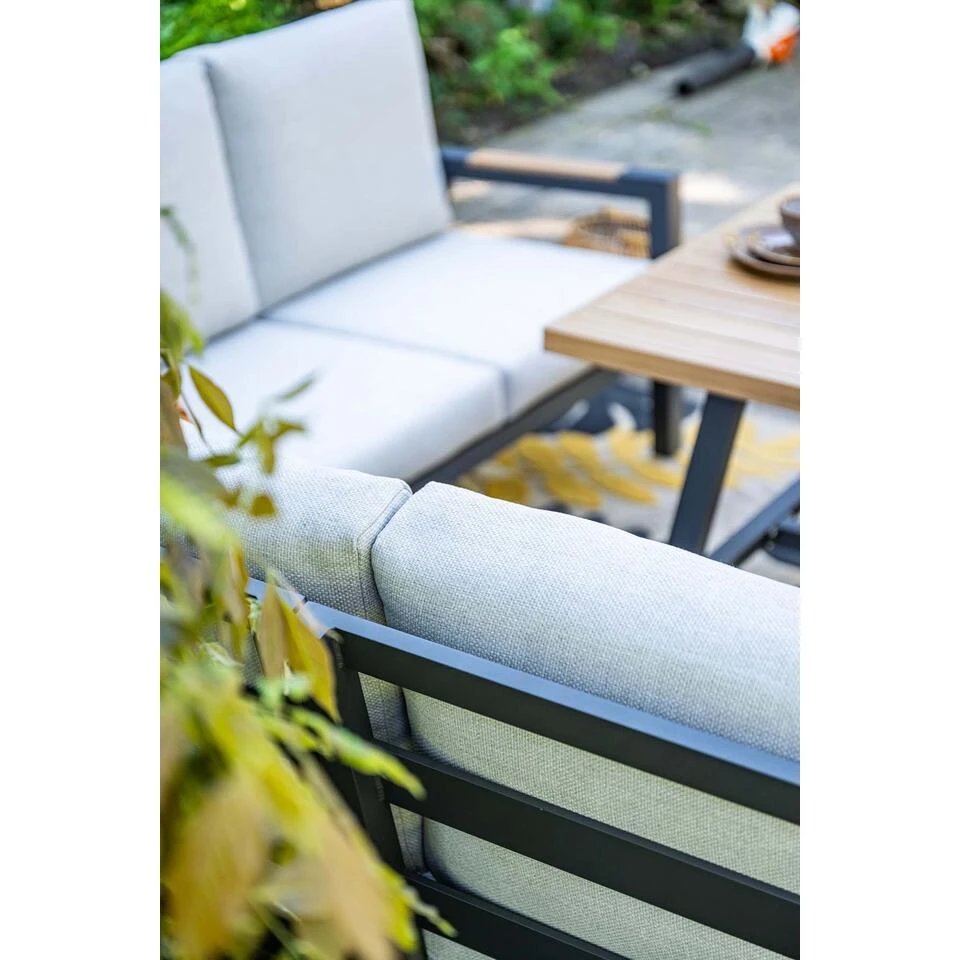 Het strakke ontwerp van de set, gecombineerd met de warme teak-look print op de armleuningen en het tafelblad, geeft je tuin meteen een fantastische uitstraling. De lounge-dining combinatie zorgt ervoor dat de zithoogte van de bank en de tafel perfect zijn om zowel comfortabel te eten als heerlijk te loungen.