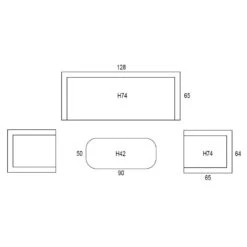 De afmeting van de setopstelling is L 255 x B 205 x H 85 cm, de tafel is L 150 x B 80 x H 66 cm, kurkjes zijn B 40 x D 40 x H 46 cm en dining fauteuil: L 67 x B 61 x H 89 cm. Gemaakt van wicker in de kleur organic grey met aluminium binnen frame en polyester antraciet kleurige kussens.