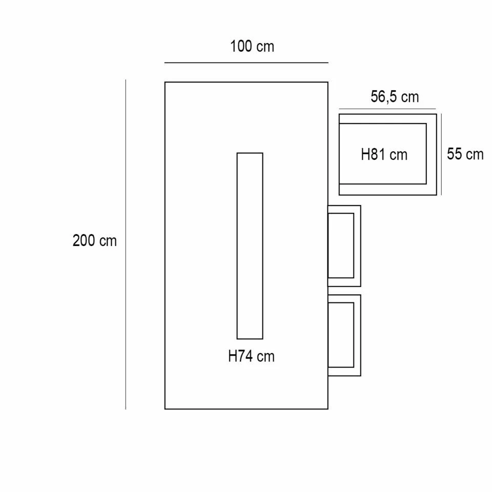 De Elnes tuintafel heeft een afmeting van 200 cm lengte, 100 cm breedte en een hoogte van 74 cm. De donker grijs kleurige tuinstoel heeft een afmeting van 56,5 cm, een breedte van 55 cm en heeft een hoogte van 81 cm.