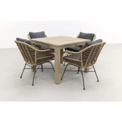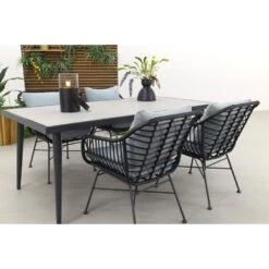 Kunststof is eenvoudig schoon te maken door een sopje van groene zeep en een katoenen doek te gebruiken. Daarna even goed afspoelen en jouw kunststof is weer schoon. De balkonset bestaat uit twee tuinstoelen en een tuintafel.