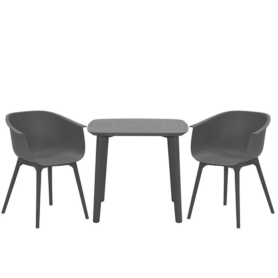 Heb jij een klein balkon, maar wil je wel graag een klein setje kwijt? Bekijk dan eens de Lexy – Mateo balkonset. Deze set is in de kleur donker grijs en volledig vervaardigd uit kunststof. De balkonset is ook nog eens een kleine set, waardoor deze eenvoudig te plaatsen is.