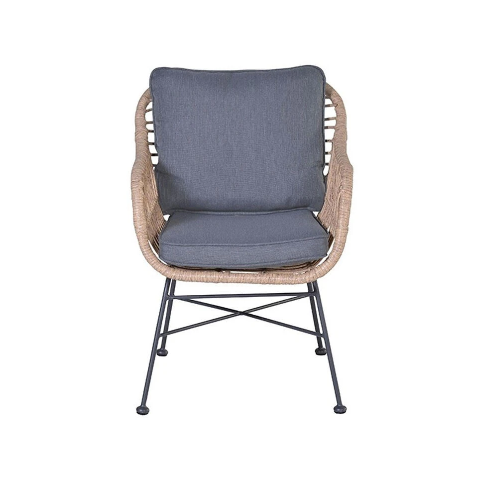 De tuinstoel wordt geleverd inclusief een donker grijskleurig zit- en rugkussen. De kussens zijn voorzien van een rits, waardoor de hoes gemakkelijk met de hand gewassen kan worden.