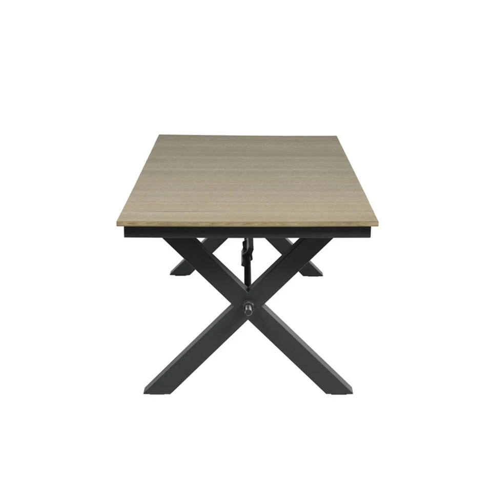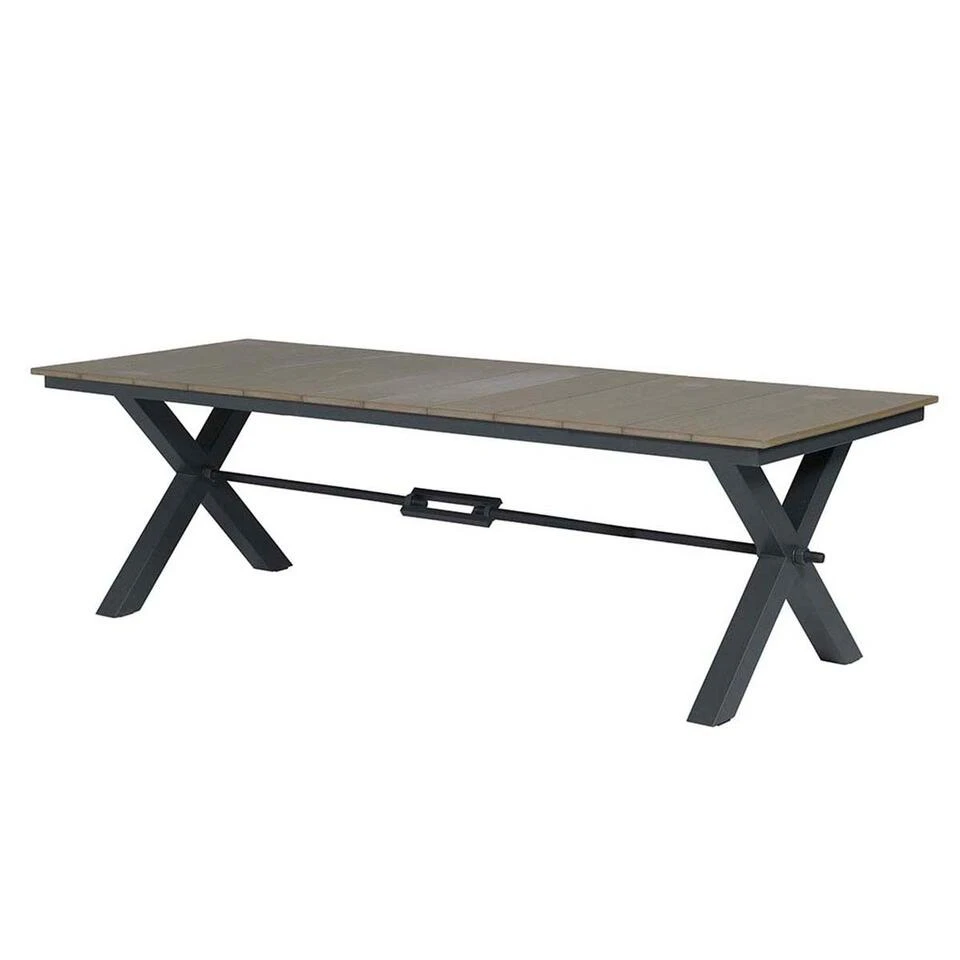 De tuinstoel heeft een afmeting van 62 bij 73 en is 96,5 cm hoog. De tuintafel is 240 bij 100 cm en is 76 cm hoog. De tuinset bestaat uit zes stoelen en 1 tuintafel.