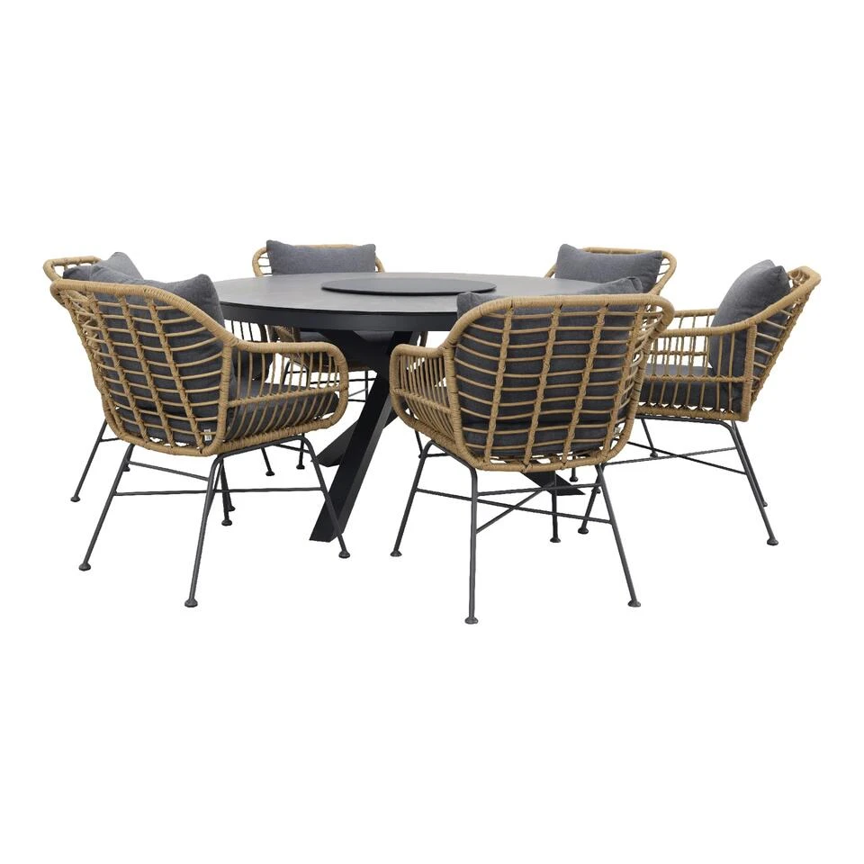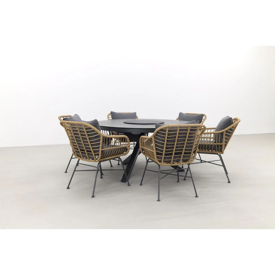 Ronde tuinset met Margriet wicker tuinstoel natural en Perth tuintafel