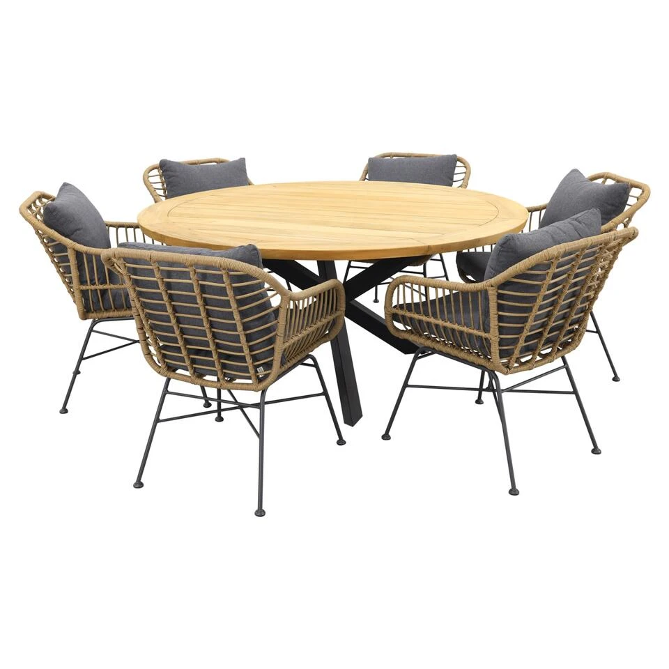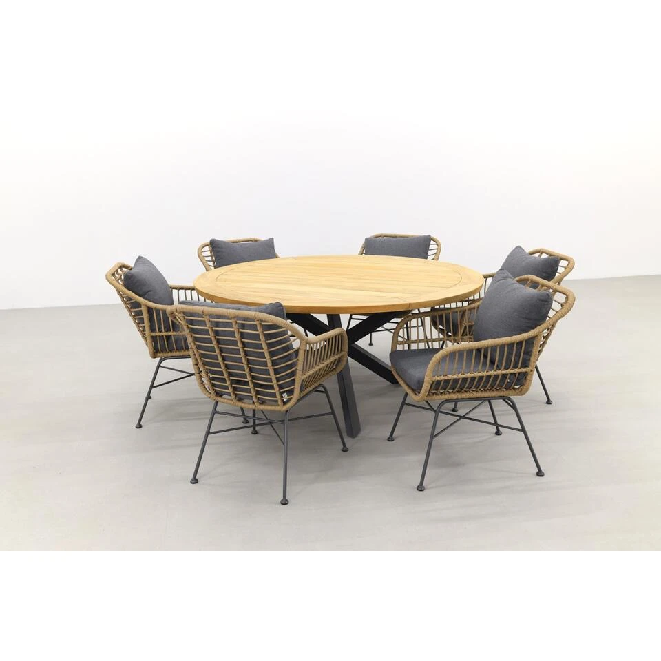 Op zoek naar een comfortabele tuinset met een stijlvolle uitstraling? Dan is de margriet tuinstoel met deze ronde tuintafel een echte aanrader. Deze mooie stoel kenmerkt zich door zijn rotan look en comfort met dikke royale kussens. Met de Prado tuintafel is dit een perfect 7-delige combinatie.