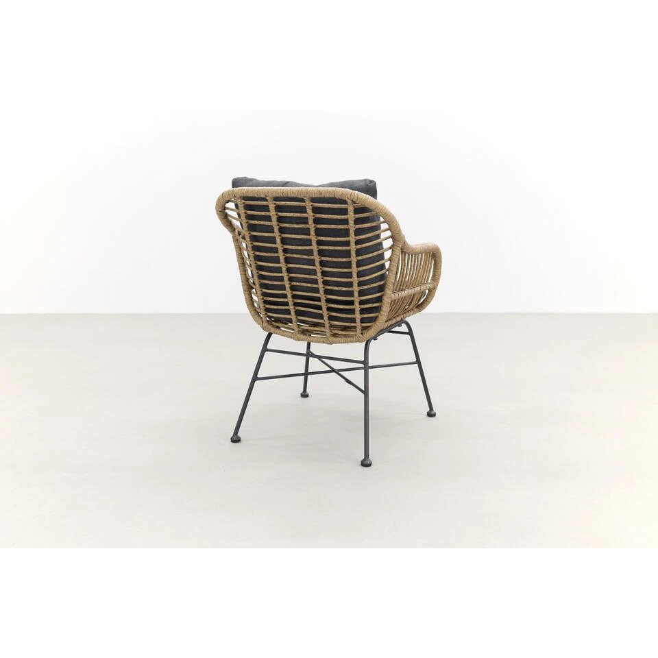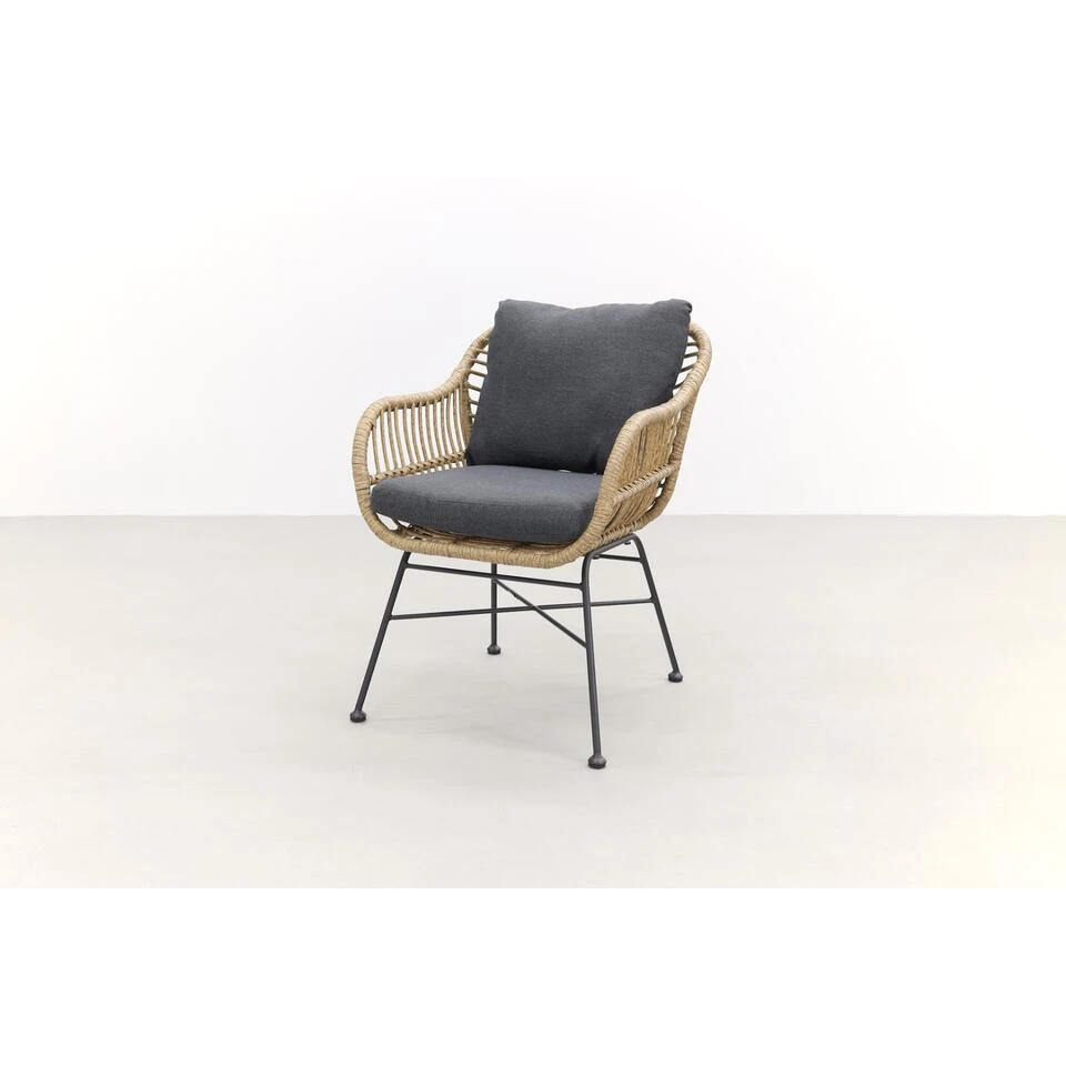 De Margriet tuinstoel heeft een zitkuip welke gemaakt is van aluminium. Om dit aluminium is het naturel kunststof vlechtwerkdraad gevlochten. De poten van de tuinstoel zijn gemaakt van staal. Extra stevig dus! Het aluminium is voorzien van een speciale coating die kras- en stootvast is. Voor optimaal zitcomfort is de Garden Impressions tuinstoel uitgerust met een zit- en rugkussen in een antraciet kleur. De kussens zijn voorzien van een rits zodat je de hoezen gemakkelijk met de hand kunt wassen.