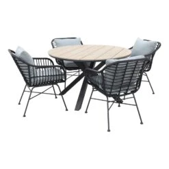 Op zoek naar een compacte stijlvolle tuinset? Dan is de Margriet diningstoel met Edison tuintafel van Garden Impressions de juiste keus voor jou! Deze diningstoel is gemaakt van wicker. Dit geeft het die authentieke rotan uitstraling. Door de kleuren combinatie van het zwarte wicker met mint grey kussens is dit een echte blikvanger in je tuin!