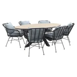 Op zoek naar een ruime tuinset met een stoere look? Dan is de Margriet tuinstoel met Edison tuintafel in ovale vorm een echte aanrader! Door de ovale vorm van deze eettafel valt de tuinset gelijk op in je tuin. Voeg daar de comfortabele Margriet stoelen aan toe en het perfecte plaatje is compleet! De tafel is lekker ruim, waardoor jij en je hele familie plaats kunnen nemen. Iedereen zal een comfortabele tijd hebben door de royale kussens die meegeleverd worden. Zie jij jezelf al zitten?