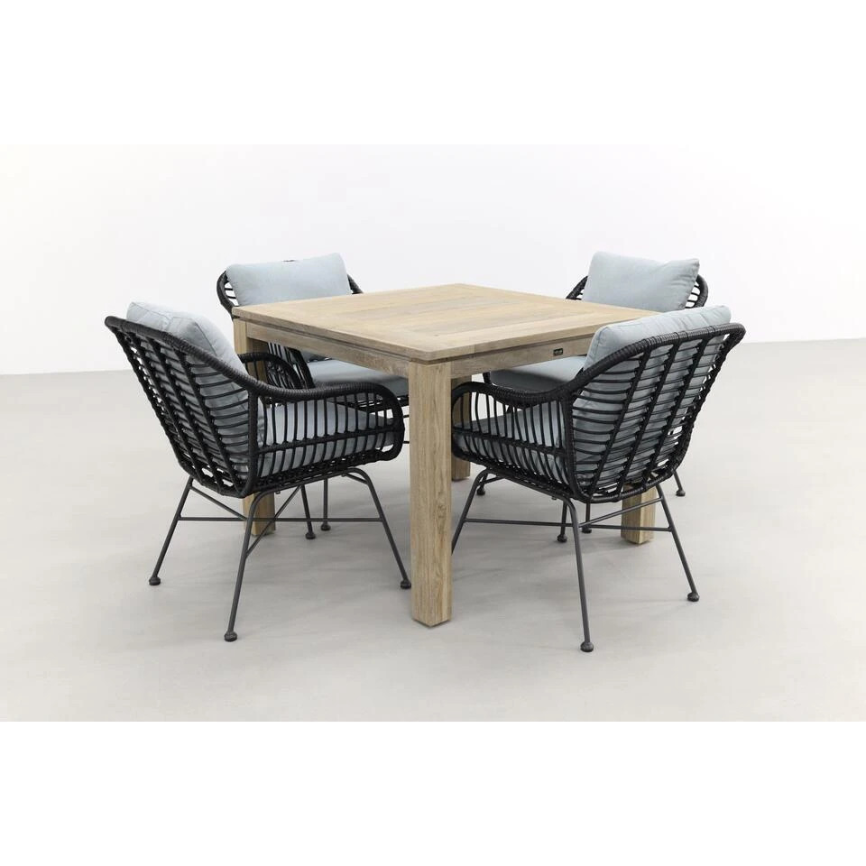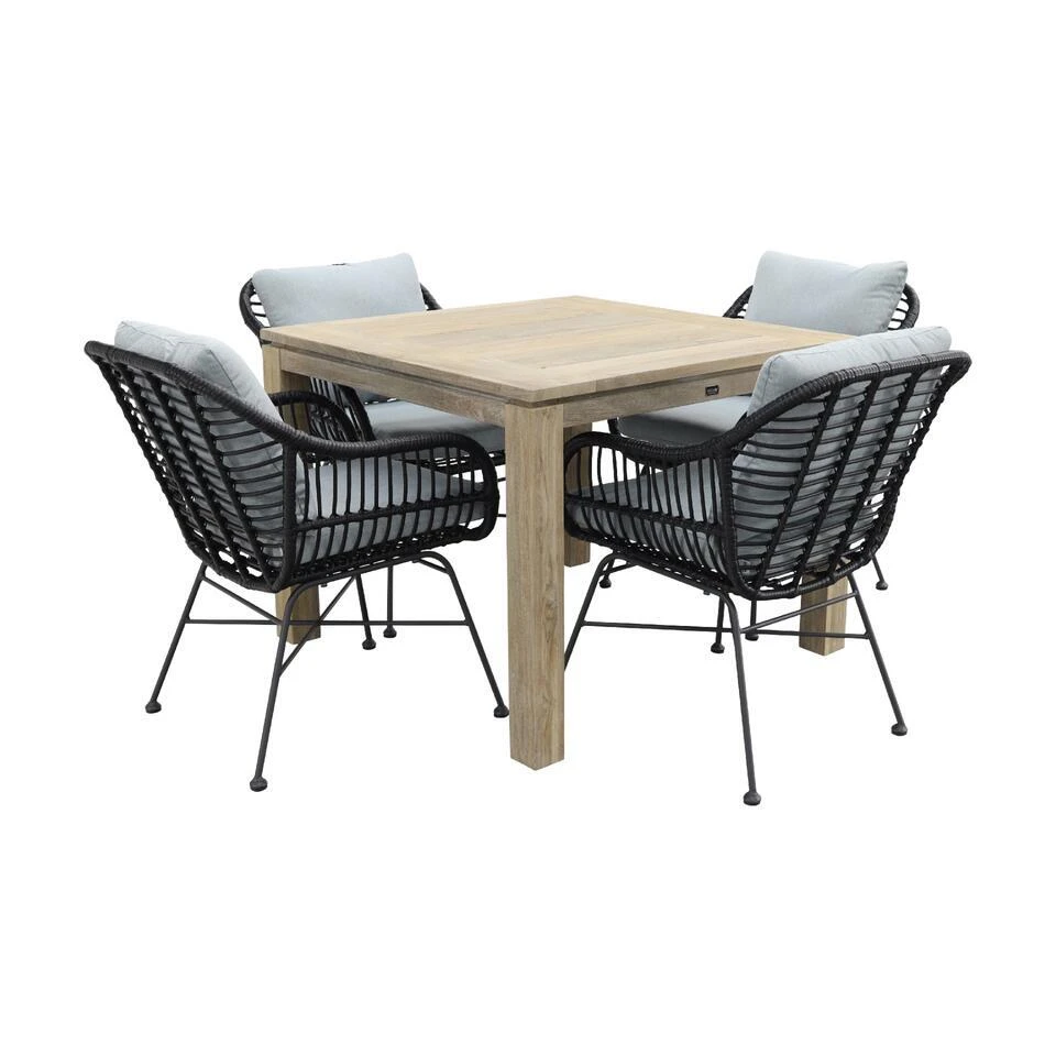 Wil jij graag een stijlvolle tuinset, alleen niet zoveel ruimte? Dan zit je met deze Rome/Margriet tuinset helemaal goed! De Rome tuintafel is vierkant en heeft een lengte van 100 cm. Hierdoor kan er één persoon aan elke kant aanschuiven. Zo gebruik je weinig ruimte en heb je toch ruimte voor 4 personen! Het teakhout van deze tafel is behandeld met een grey wash, waardoor je een stoere look krijgt. Deze uitstraling wordt afgemaakt door de Margriet tuinstoel van Garden Impressions. Het zwarte wicker van deze stoel geeft een retro stoel een modern tintje. Een unieke look die volstaat als echte blikvanger! Zie jij jezelf al plaatsnemen in deze compacte tuinset? Bestel dan direct online!