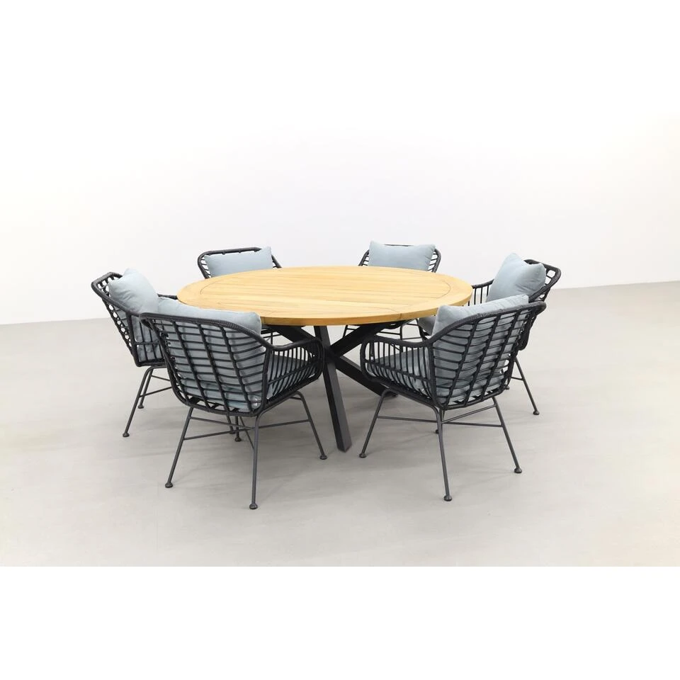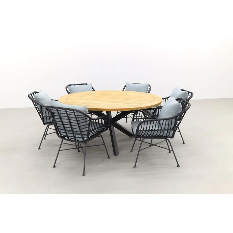 De Prado tuintafel van Taste heeft een teakhouten blad. Teak hout is een harde houtsoort en daarmee perfect geschikt voor het gebruik in tuintafels. Teak hout zal na verloop van tijd gaan verkleuren en haarscheurtjes gaan vertonen. Dit is niet erg want het maakt de tafel juist nog stoerder. Mocht je de voorkeur hebben om de originele kleur te behouden van het teak hout. Dan adviseren wij om de tafel te behandelen met een protector. Deze kun je eenvoudig mee bestellen in de voordeelbundel. Om vlekken te voorkomen kun je de teak tafel ook behandelen met een teak shield. Dit onderhoudsmiddel zorgt er tevens voor dat het teak water- en vuilafstotend is. Let op dat je de teak tuintafel nooit afdekt met een hoes. Wanneer het tafelblad volledig afgesloten wordt kan het niet “ademen” en kunnen er lelijke vlekken ontstaan.