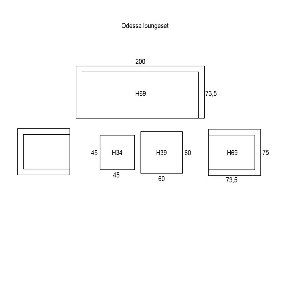 Afmeting loungebank: 200 x 73,5 x H 69 cm