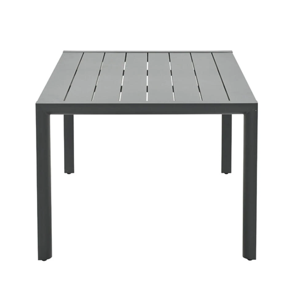 De tuintafel afmeting van 180 bij 100 cm en 76.5 cm hoog. De tuinstoel heeft een afmeting van 61,5 bij 70 cm en is 112,5 cm hoog. De zitdiepte van de tuinstoel is 45 cm.