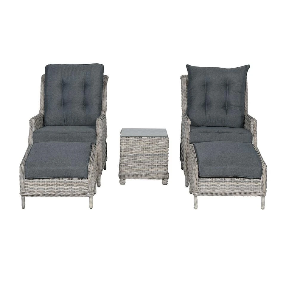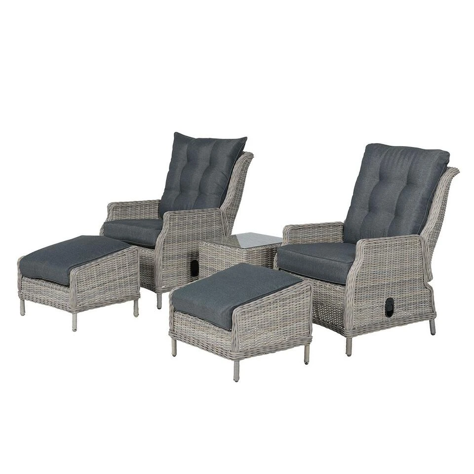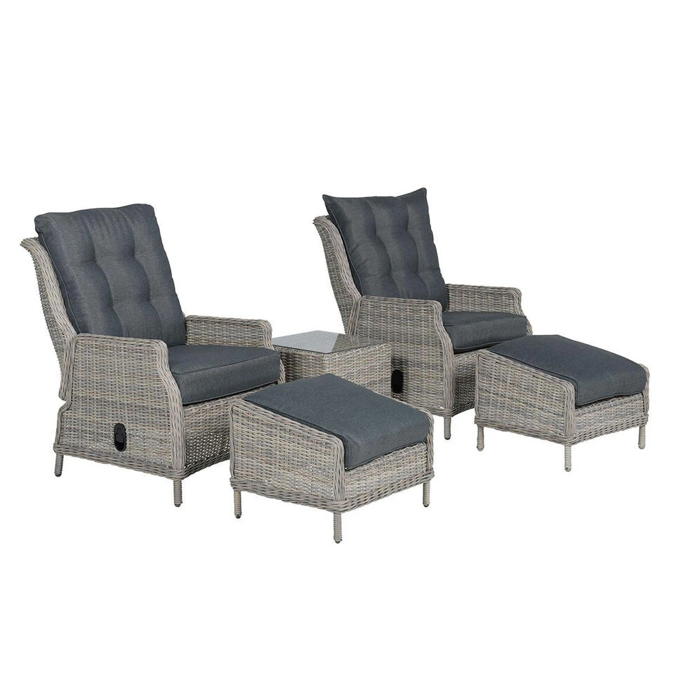 De loungeset wordt geleverd met comfortabele kussens van 9 cm dikte. De kussens zijn gemaakt van hoogwaardige kwaliteit polyester en zijn voorzien van een rits. De hoezen zijn hierdoor eenvoudig met de hand te wassen. De kussens zijn wel voorzien van een waterafstotende coating. Stel dat er drinken gemorst wordt op de kussens, dan is dit eenvoudig er vanaf te vegen. De kussens zijn dus niet 100% waterdicht. Na het gebruik van de kussens kunnen deze opgeborgen worden in de schuur of in een kussenbox.