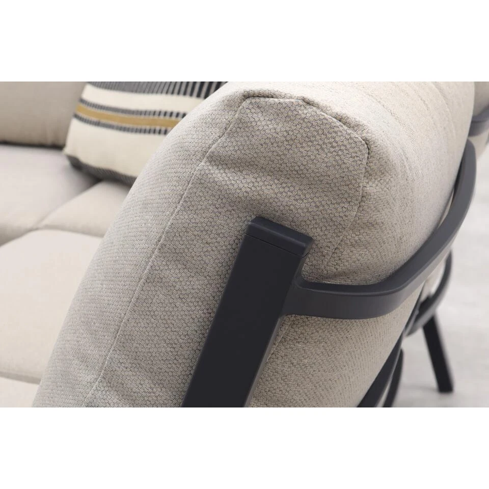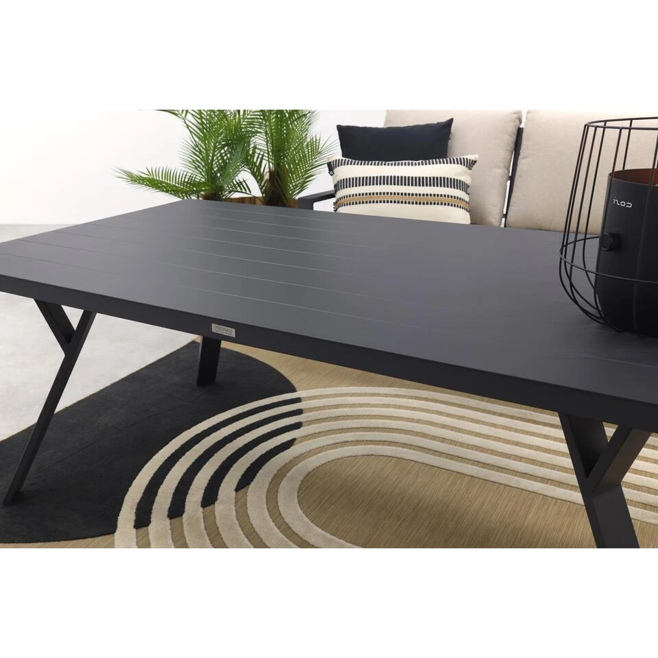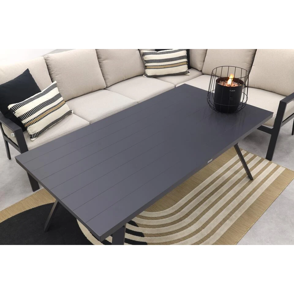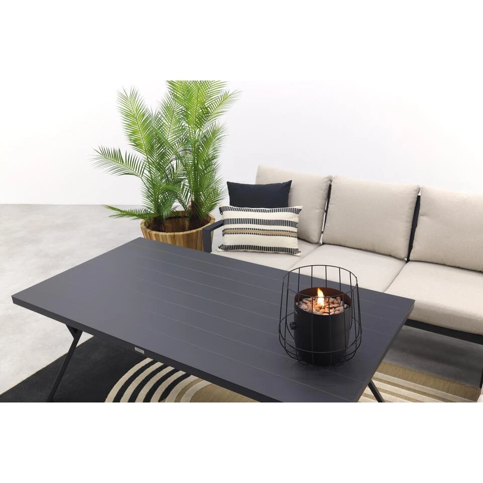 Zoek je een stijlvollen loungeset waar je ook comfortabel aan kunt eten? Dan is de Sergio lounge diningset een perfecte keuze! Deze loungeset heeft een elegante en moderne uitstraling. Dit komt mede door het mooie contrast tussen het zwarte frame en de zandkleur die ‘Desert’ is gedoopt. Geniet van het beste van twee werelden: loungen en dineren in één. Deze set biedt comfortabel plaats aan 5 tot 6 personen. Als je extra zitplaatsen wilt toevoegen bekijk dan eens de Sergio diningstoel. Je besteld deze loungeset gemakkelijk online! Liever eerst even proefzitten? Kom dan langs in onze showroom in Opheusden, Duiven of Apeldoorn. je bent van harte welkom!
