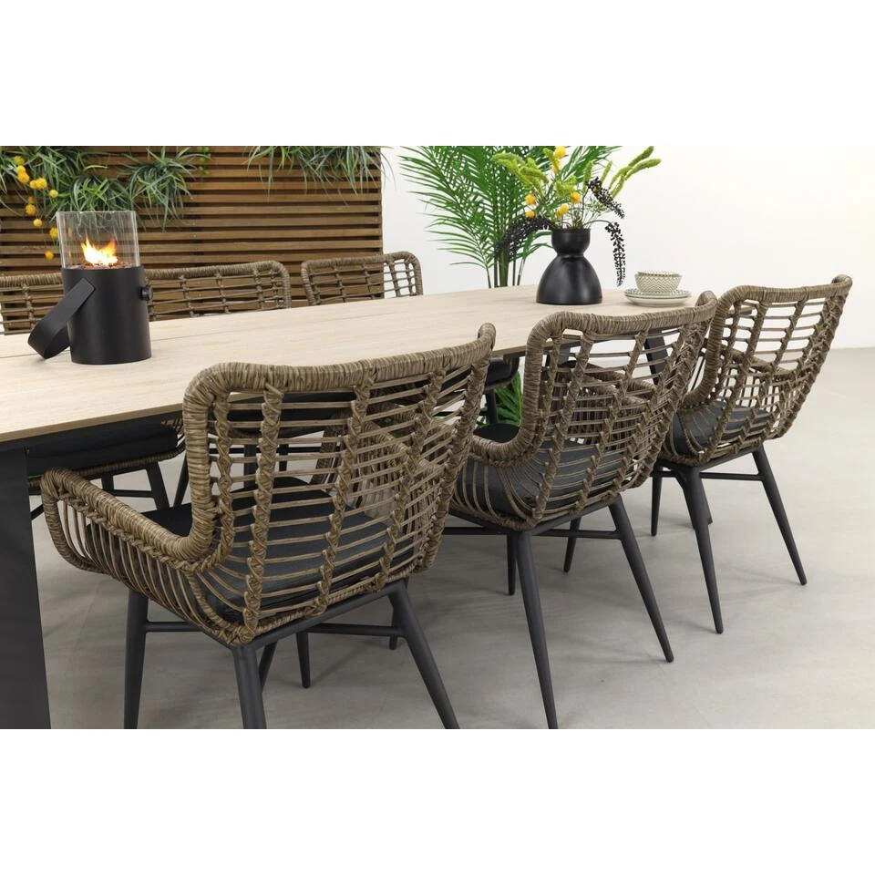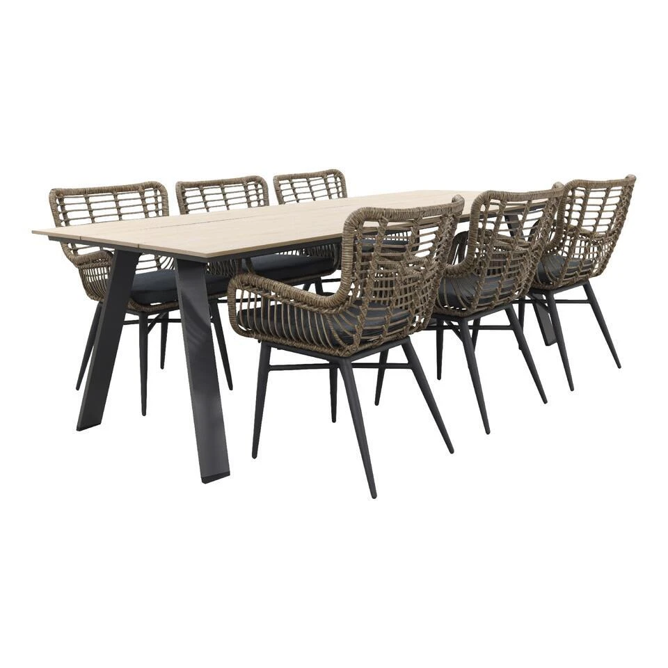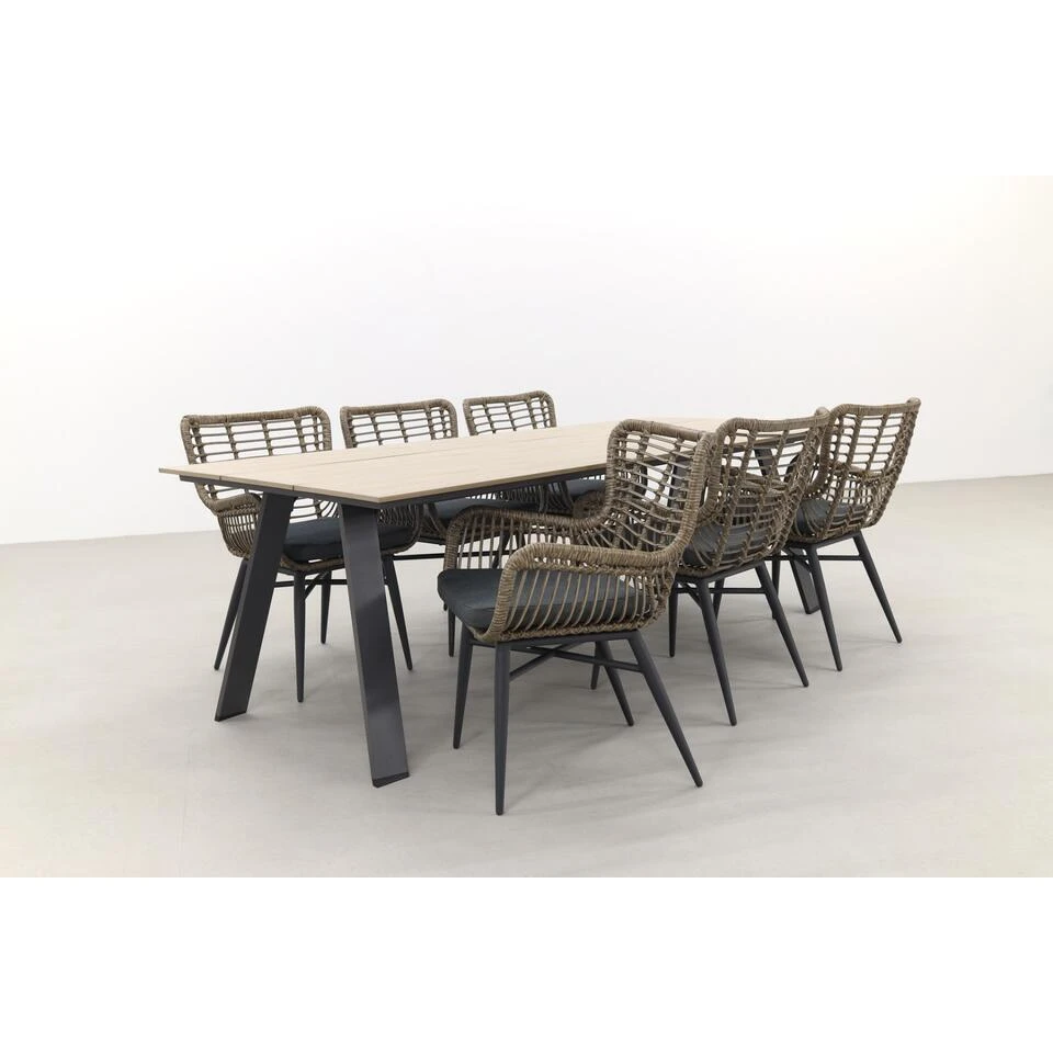 Fan van een retro look met een moderne twist? Dan is deze 6-persoons tuinset met Jasmine wicker stoelen in de kleur natural en een ruime Nevada tuintafel een uitstekende keuze. De Jasmine stoelen bieden fijn zitcomfort voor lange zomeravonden aan tafel. De combinatie met de robuuste tafel van 240 cm maakt deze set perfect voor etentjes of borrels met vrienden en familie. Bestel eenvoudig online!