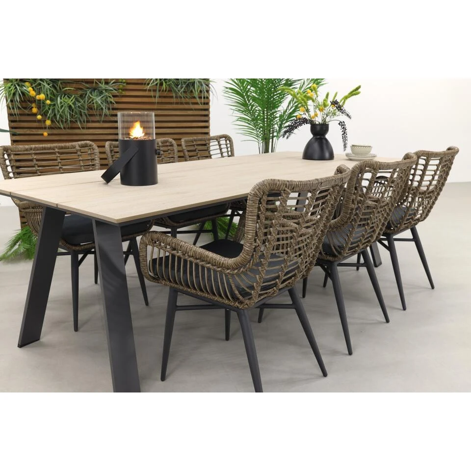 1x Nevada tuintafel 240 x 100 cm – carbon frame met light teak polywood blad