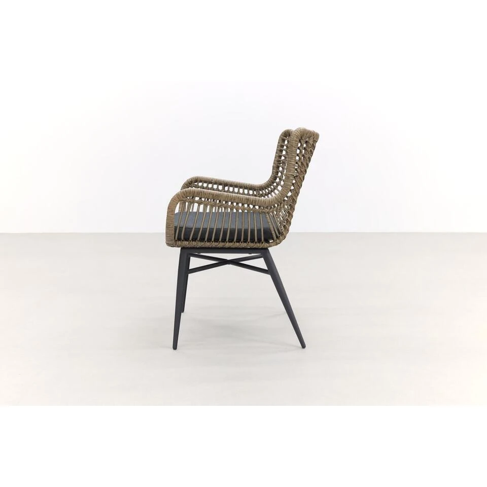 De Jasmine tuinstoel heeft een stevig aluminium frame dat is afgewerkt met een krasvaste antracietkleurige coating. Rondom het frame is duurzaam wicker gevlochten in een warme natural kleur. Deze stoel heeft de charme van vroeger, maar dan met het gemak van nu: het kunststof vlechtwerk is weerbestendig en onderhoudsvriendelijk. De open gevlochten rugleuning geeft de stoel een luchtige uitstraling. Elke stoel wordt geleverd met een comfortabel zitkussen.