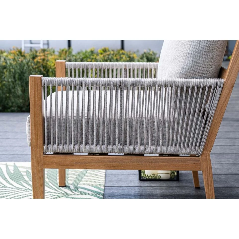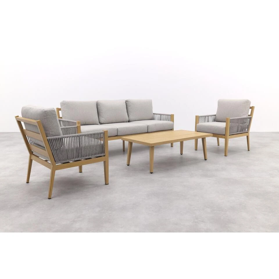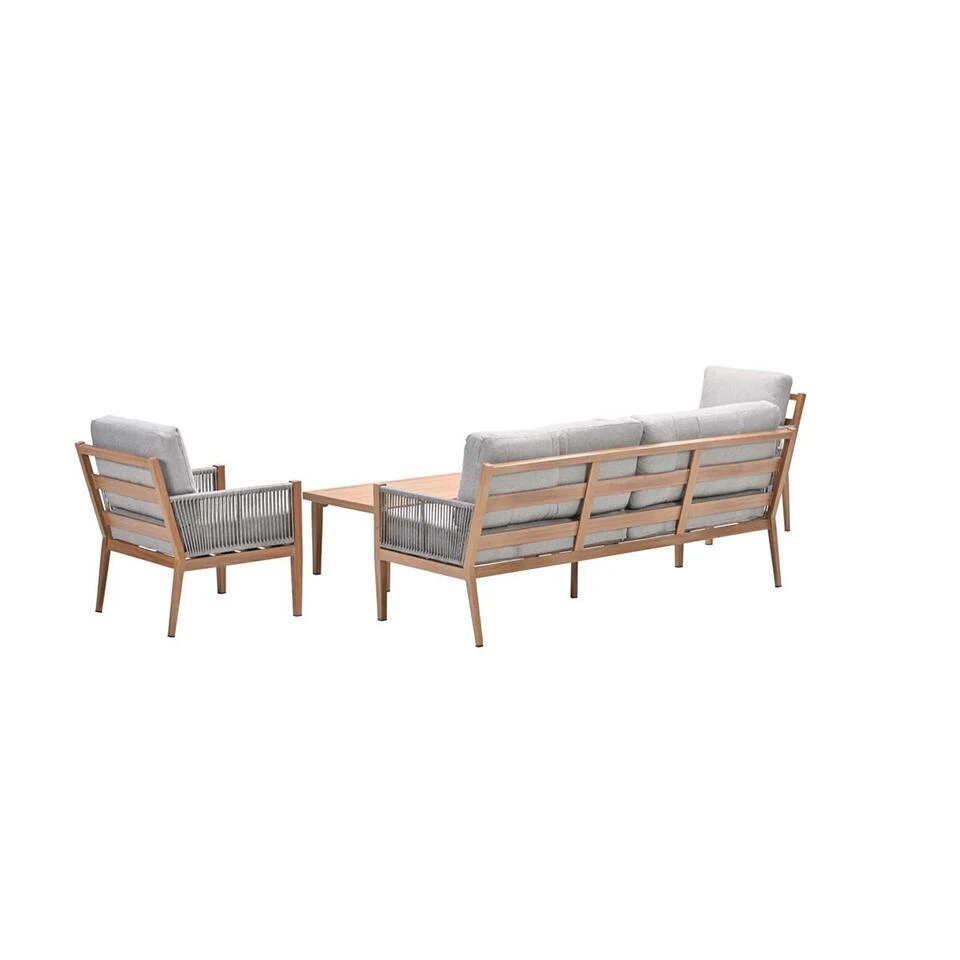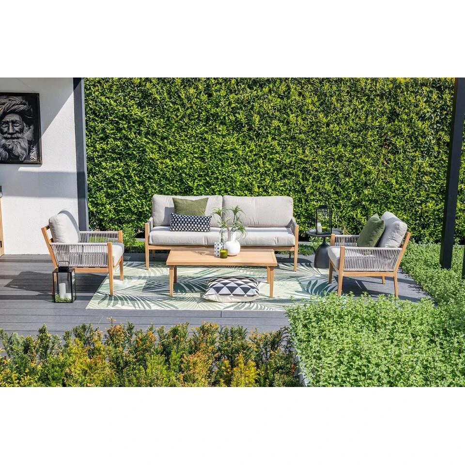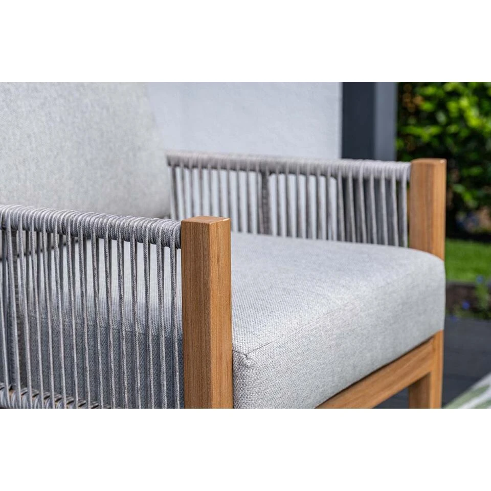 De armleuningen van de Sardinia set zijn afgewerkt met een prachtige finishing touch: hieromheen is namelijk een bijpassend rope (touw) gevlochten. Dit rope is gemaakt van een weerbestendig, zeer kleurvast materiaal en geeft de Sardinia set zijn luxueuze uitstraling.